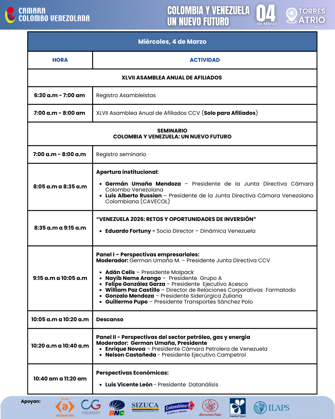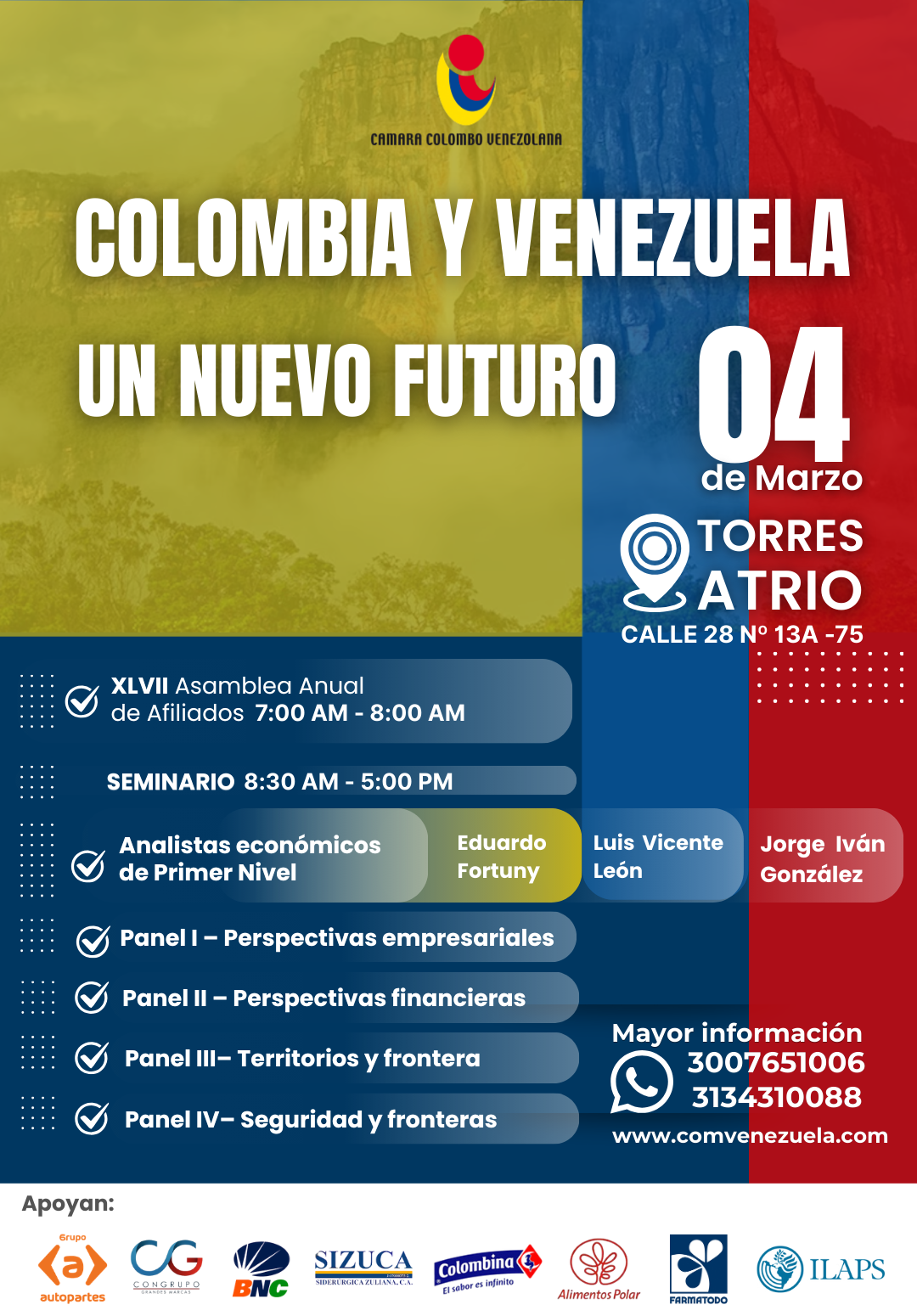 - Lugar: Cámara Colombo Venezolana (Calle 72 #8-24 of 503), Bogotá